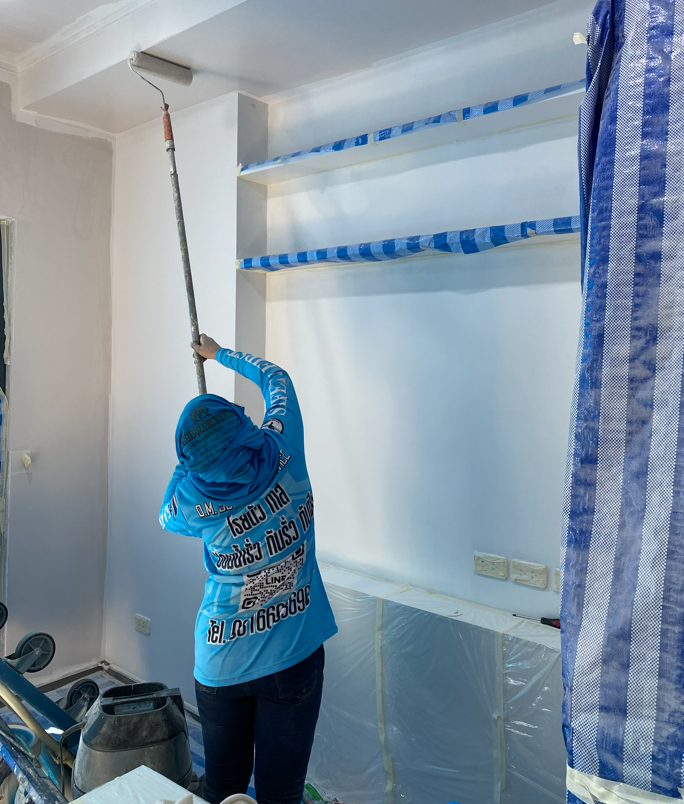 ทีมงานของเราดำเนินงานอย่างเป็นระบบ ตั้งแต่การตรวจสอบสภาพพื้นที่ ซ่อมปรับผิวผนังและฝ้าให้เรียบร้อย ก่อนทาสีด้วยวัสดุคุณภาพ เพื่อให้งานออกมาสวยงาม แข็งแรง และมีอายุการใช้งานยาวนาน