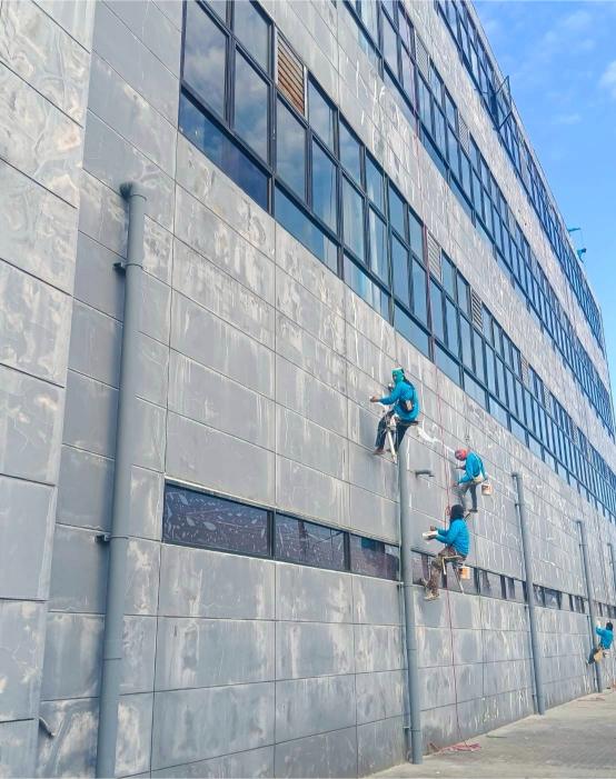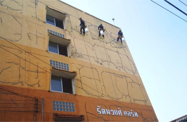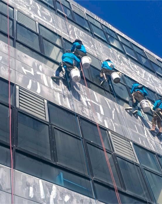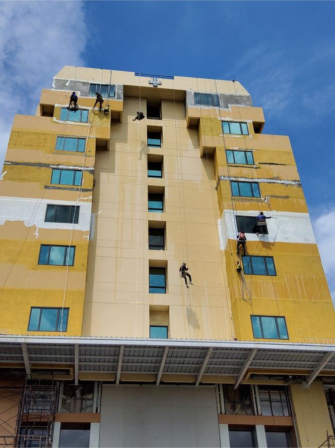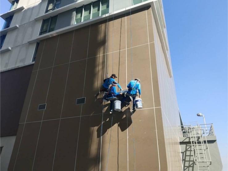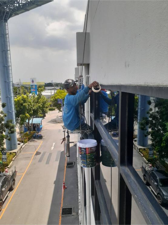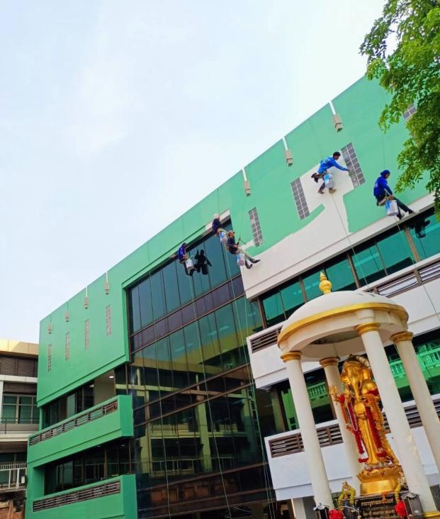 สำหรับผนังภายนอกอาคารทุกประเภท ช่วยฟื้นฟูสภาพอาคารให้ดูใหม่ สวยงาม และช่วยปกป้องพื้นผิวจากแสงแดด ความชื้น และสภาพอากาศเหมาะสำหรับงานปรับปรุงอาคารโดยไม่ต้องตั้งนั่งร้าน ลดระยะเวลาการทำงาน และไม่กระทบการใช้งานภายในอาคาร5.งานโรยตัวยิงซิลิโคนกระจกหน้าต่างอาคาร