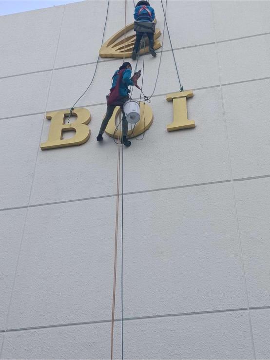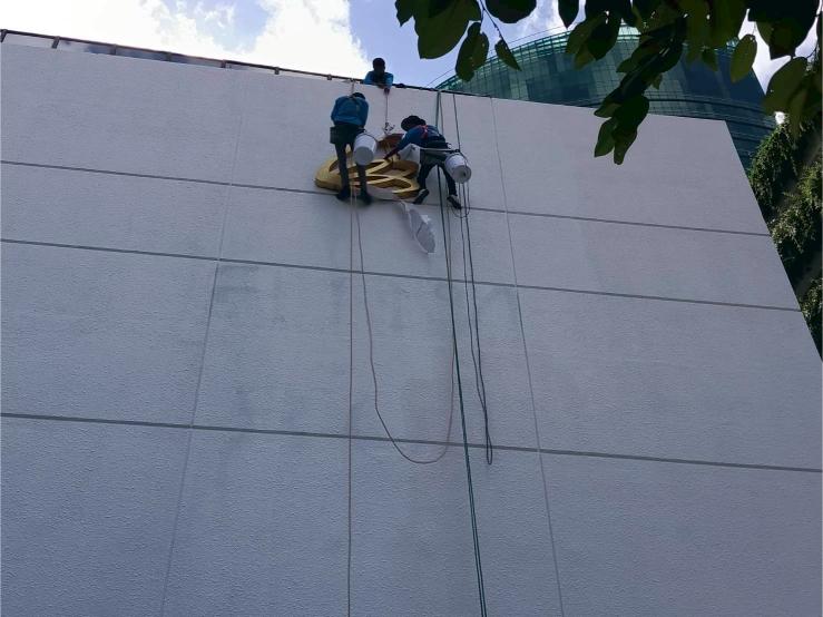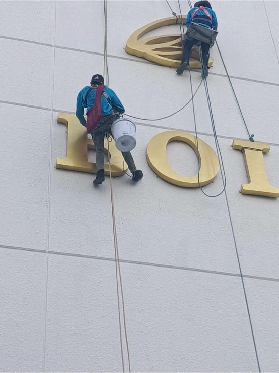 ติดตั้ง รื้อถอน ป้าย ท่อ ระบบไฟ และอุปกรณ์ต่าง ๆ โดยไม่ต้องตั้งนั่งร้าน4.งานโรยตัวทาสี / พ่นสีอาคาร