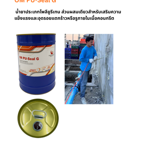 OM PU-Flex คือ นํ้ายาประเภทโพลียูรีเทน ส่วนผสมเดียว ใช้สําหรับดูดซับนํ้าเพื่อหยุดนํ้ารั่วซึมทันที ก่อนที่จะทําการฉีด OM PU-Seal G เพื่อเสริมความแข็งแรงในเนื้อคอนกรีต